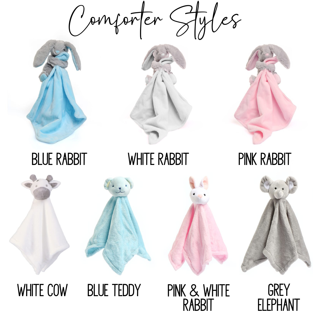 Customise your child's comfort with our Animal Personalised Embroidered Comforter! Choose from a selection of animals and colours, and have their name beautifully embroidered on it in a font and thread colour of your choice. Give them a special, one-of-a-kind friend to cuddle and soothe them to sleep.