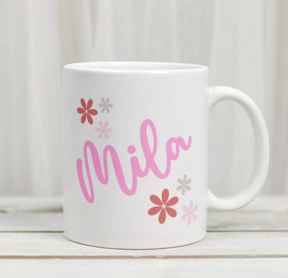 Capture the precious moments of your baby girl's scan with our personalised mug. Adorned with delicate pink flowers, the mug features your baby's name on one side and the scan photo on the other - creating a beautiful keepsake to cherish forever. Make every sip a reminder of your little one's journey!. Crafted from durable ceramic, its 11-ounce capacity is perfect for your morning coffee or tea.