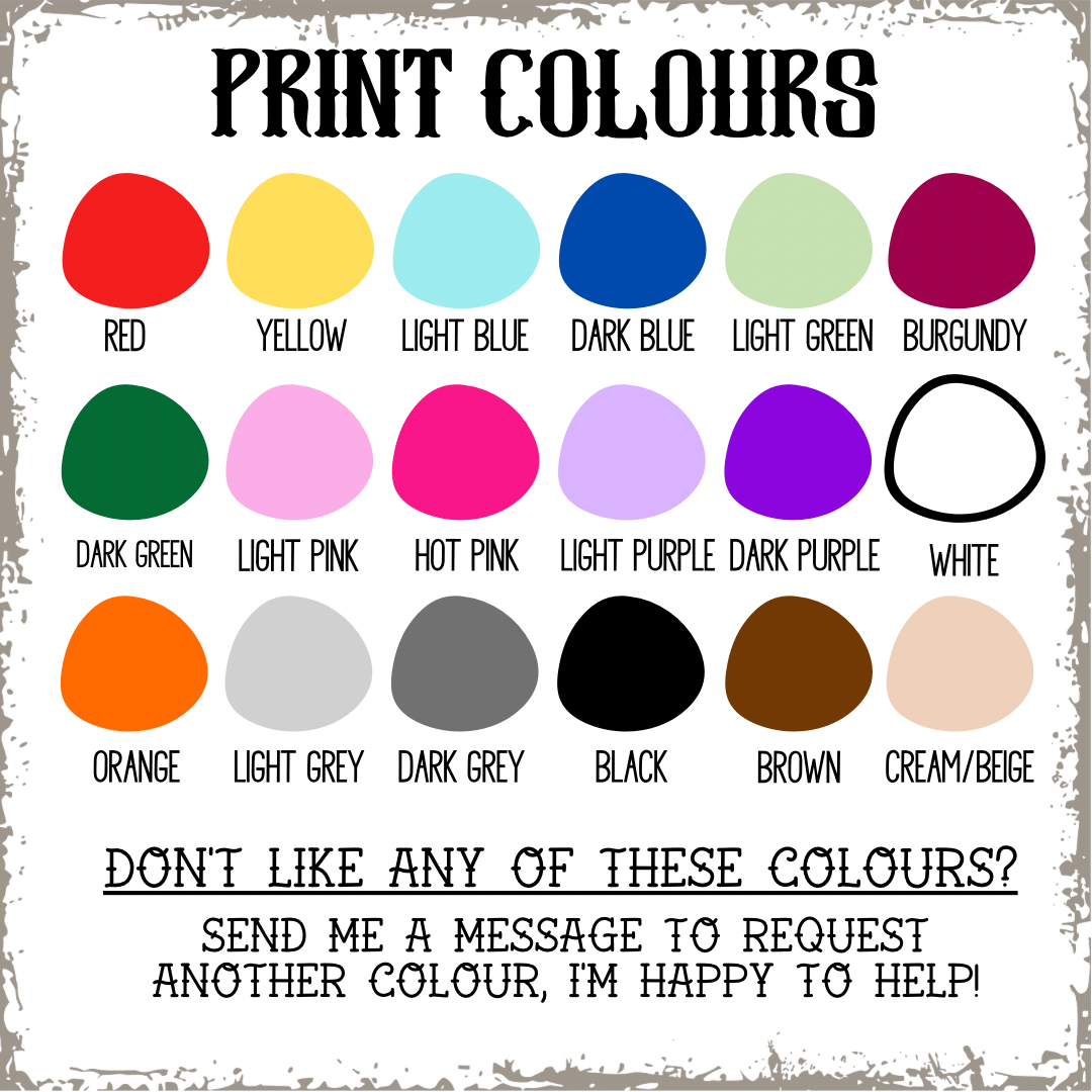 Please use the contact form below to add the tshirt colour you would like as well as what colour you would like the graphic (see images for options)