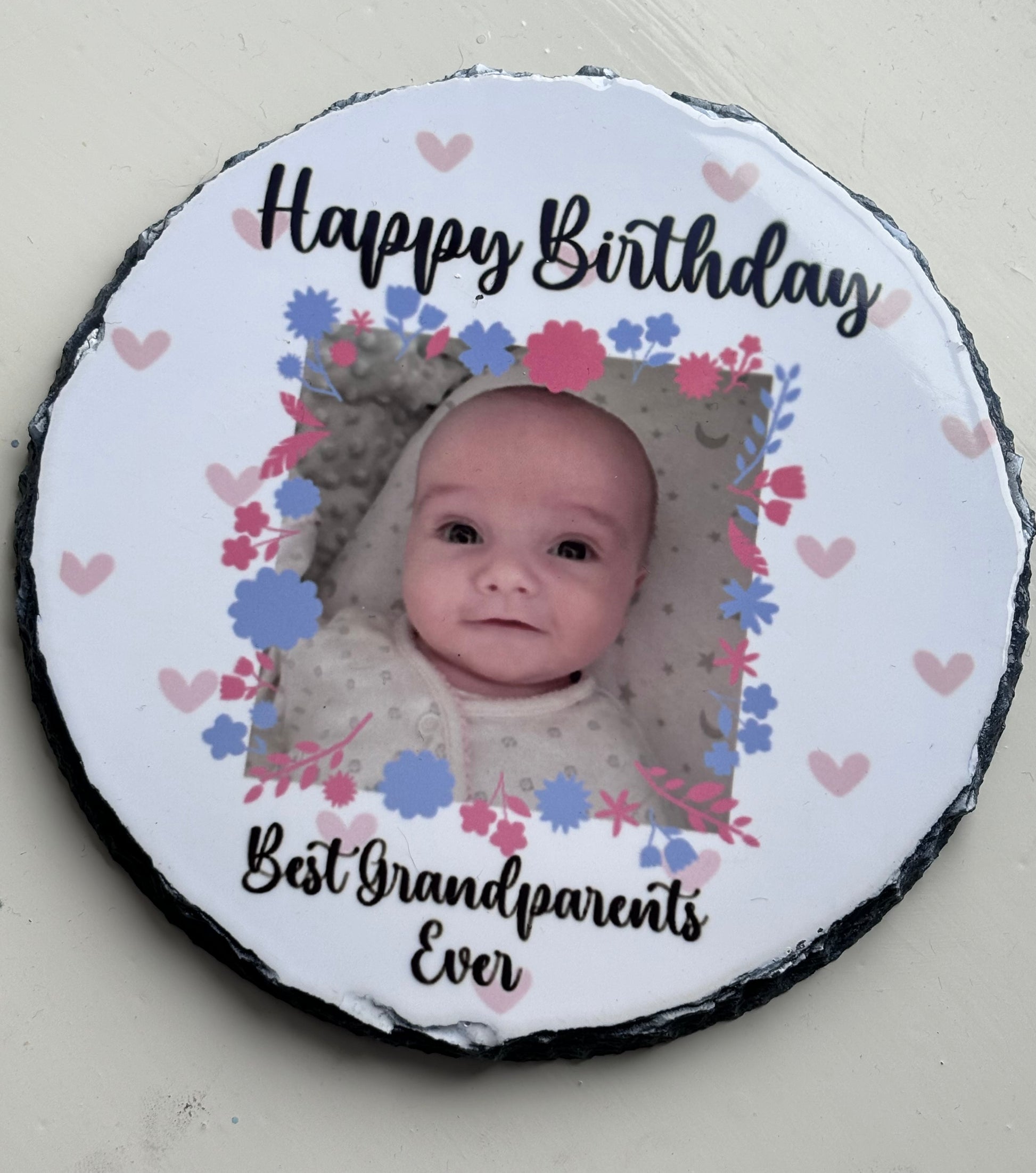 Custom Personalised Circular Rock Slate with Stand