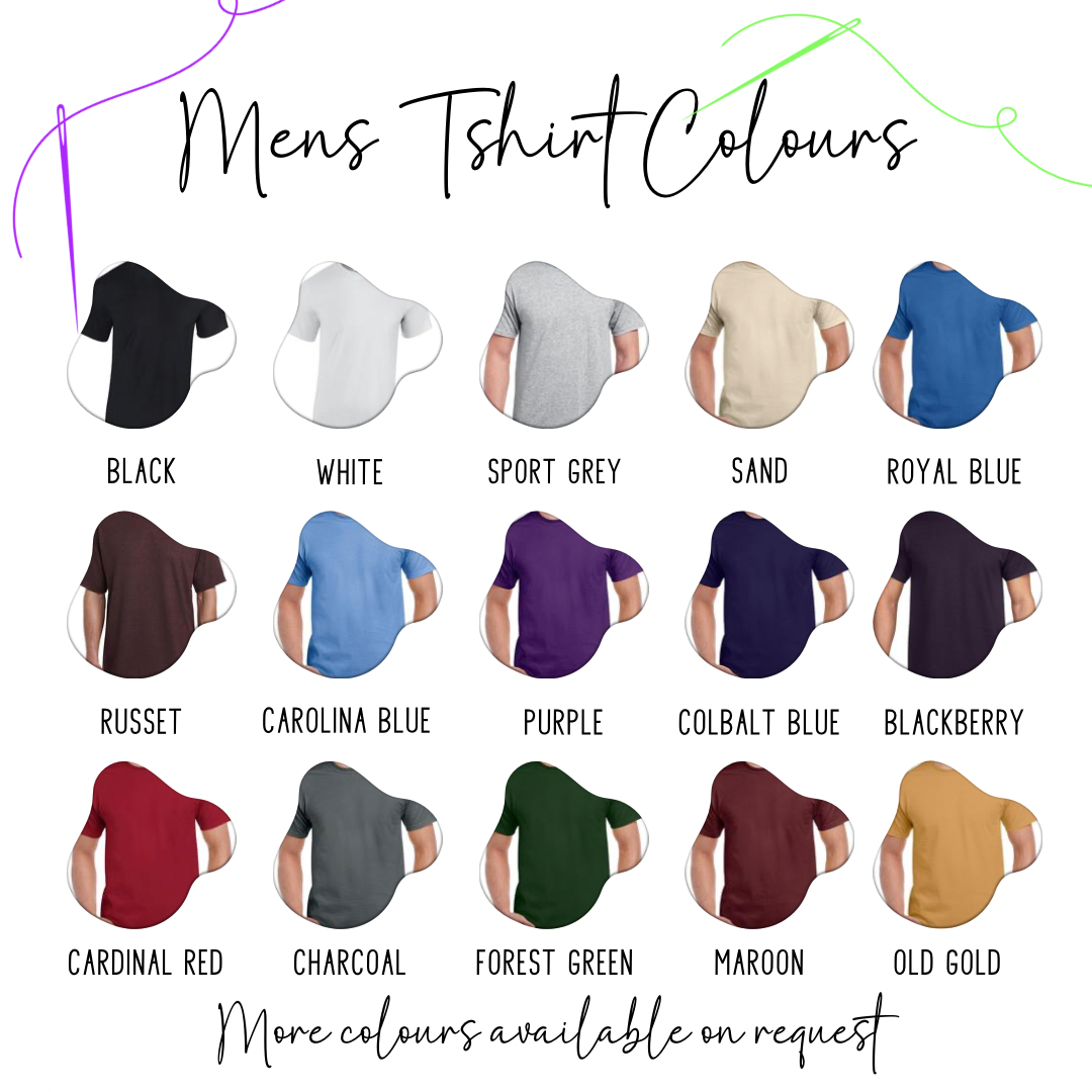Use the contact box below to enter the colour T-shirt/sweatshirt you would like. Embroidery is in white & black