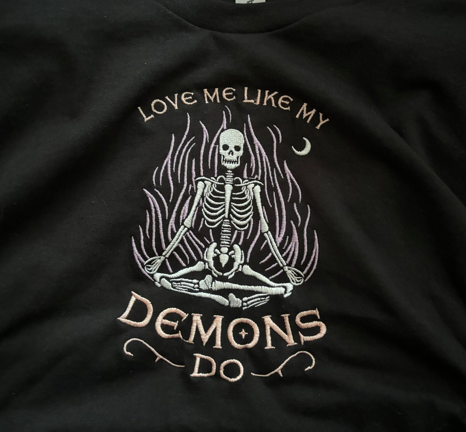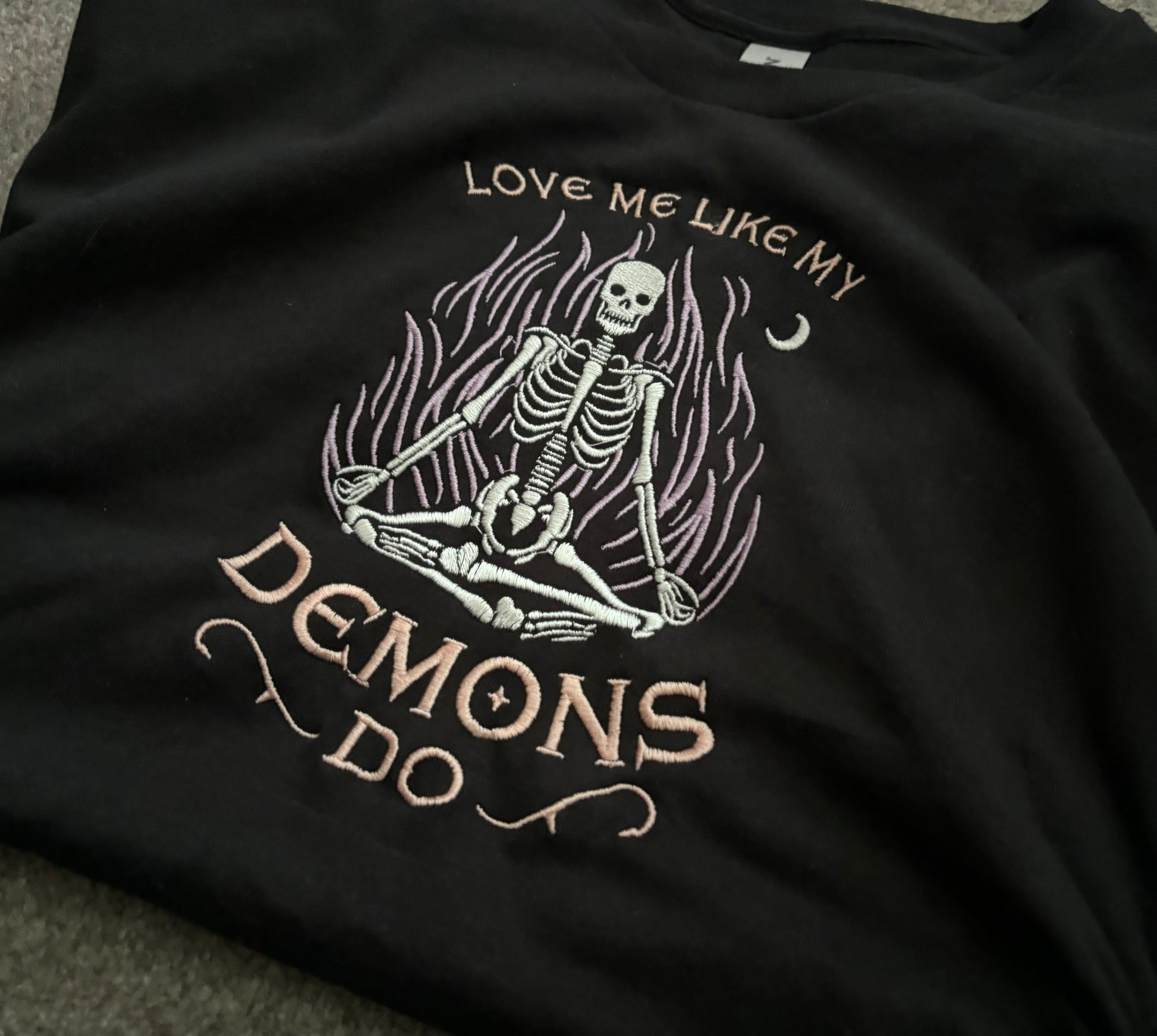 ‘Love Me Like My Demons Do’ Embroidered Hoodie/Sweatshirt