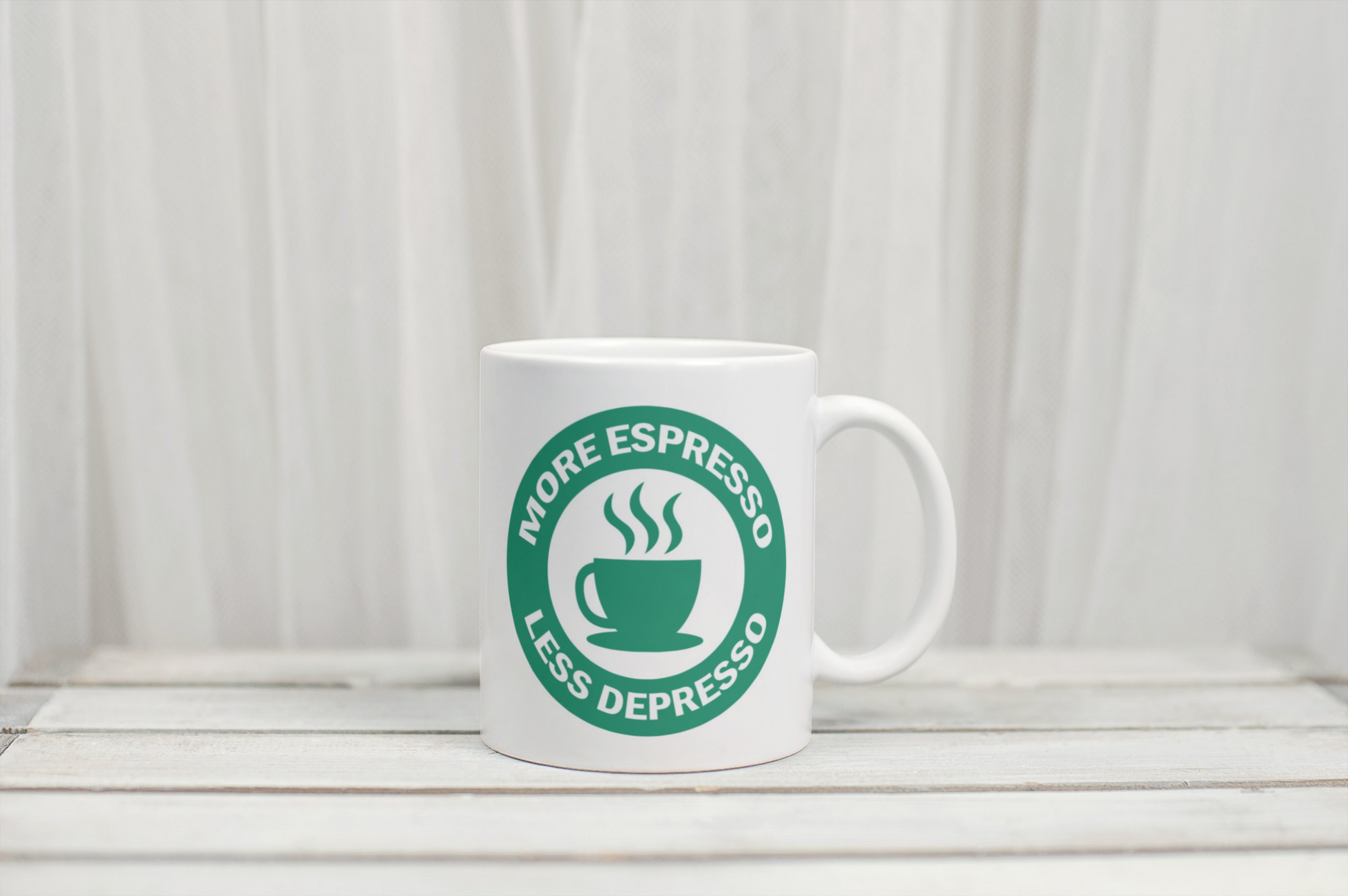 Start your days with a good laugh! Our ‘More Espresso, Less Depresso’ Custom Mug will bring a smile to your face with its funny but true phrase. Plus, you can personalise it with a name or any other message on the other side of the mug, making it even more special. Show off your coffee mug and bring joy to yourself and others - Life is too short to take it too seriously!