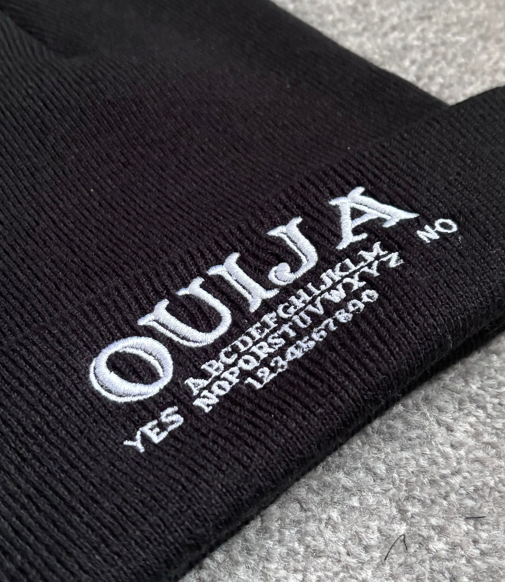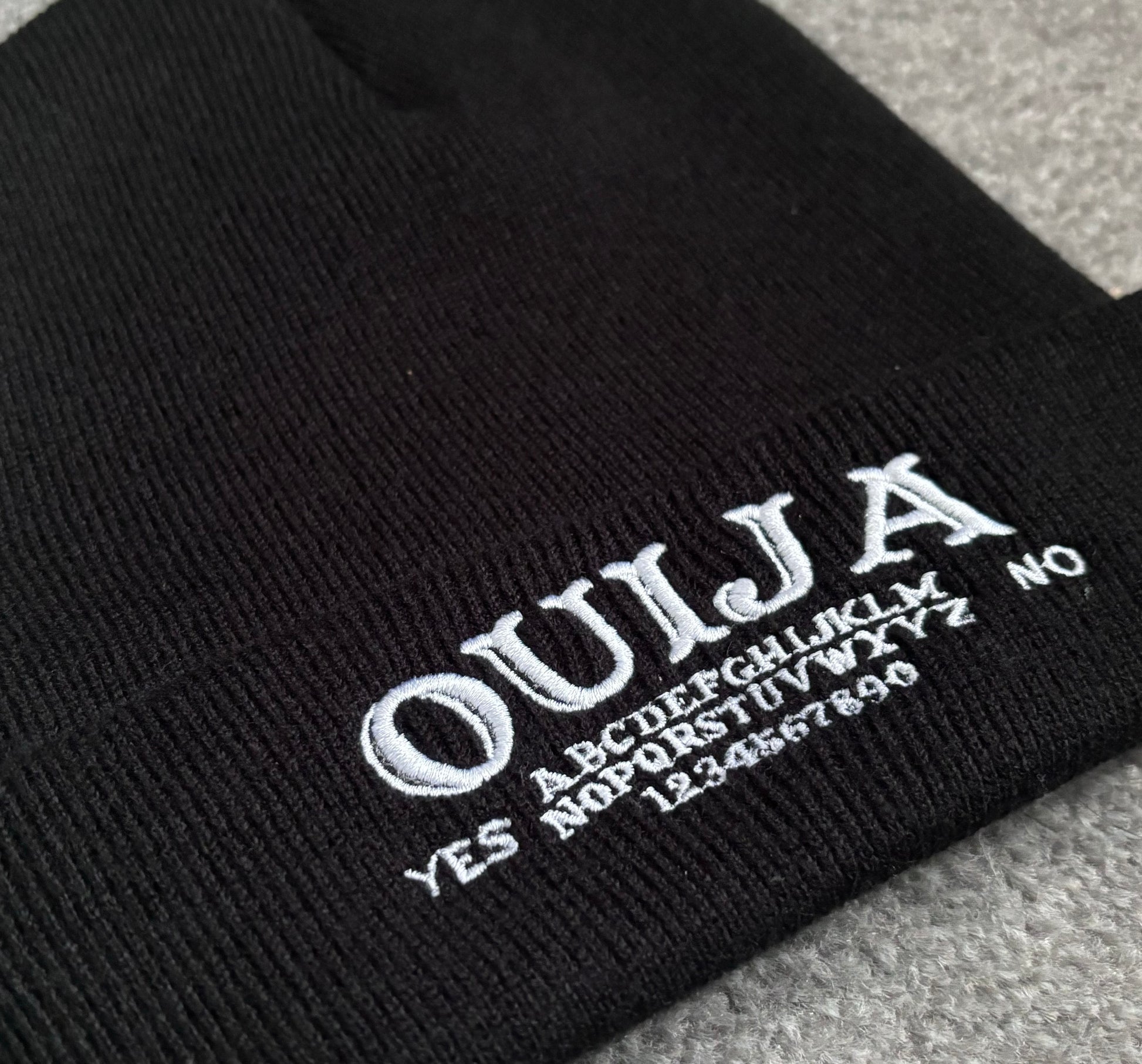 Take your style to the next level with our Ouija Board Embroidered Cuffed Beanie! Available in multiple colours and featuring your choice of white or black embroidery, this beanie adds a bold touch to any outfit. Embrace the unknown and stand out in our unique, risk-taking accessory!