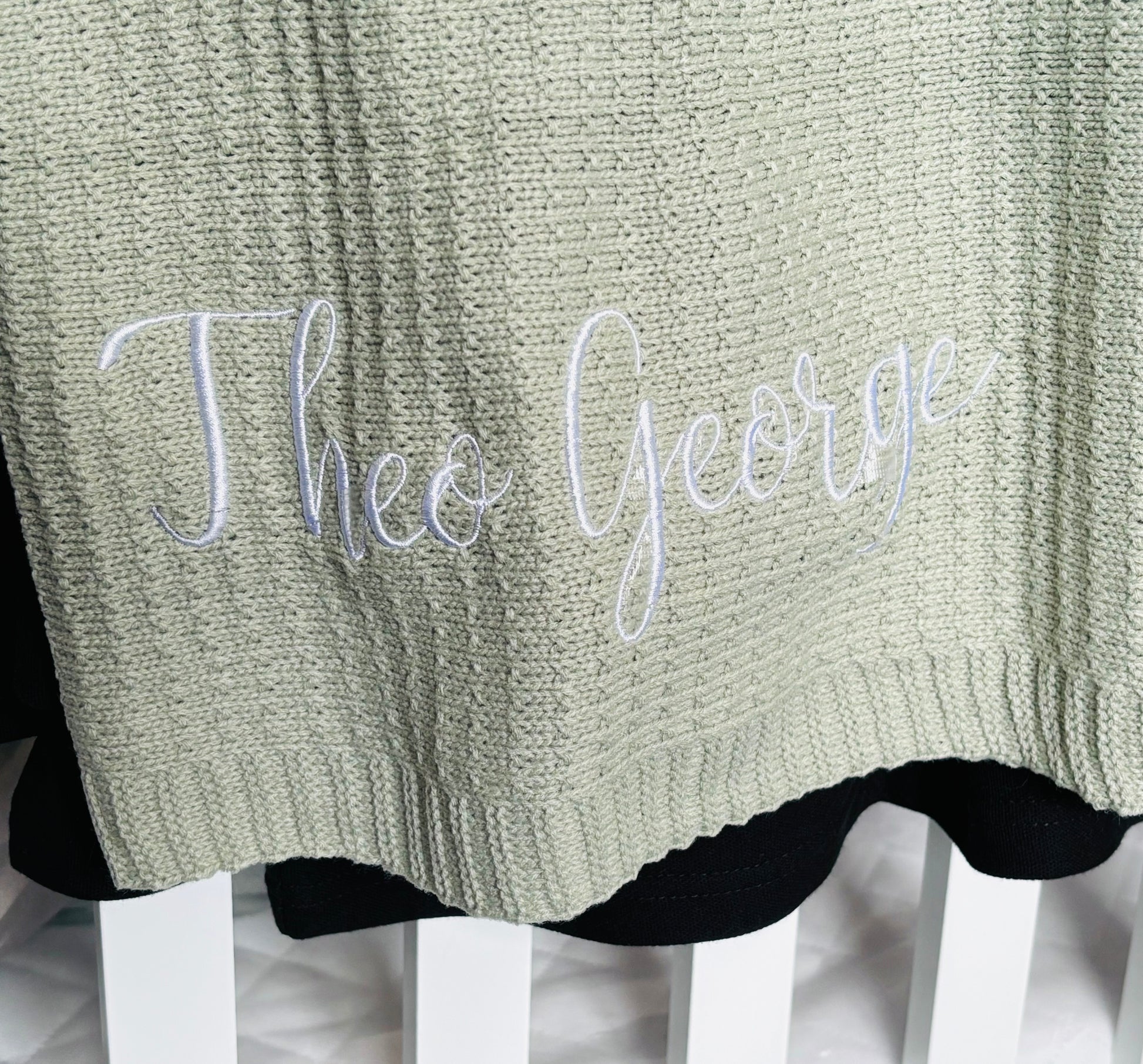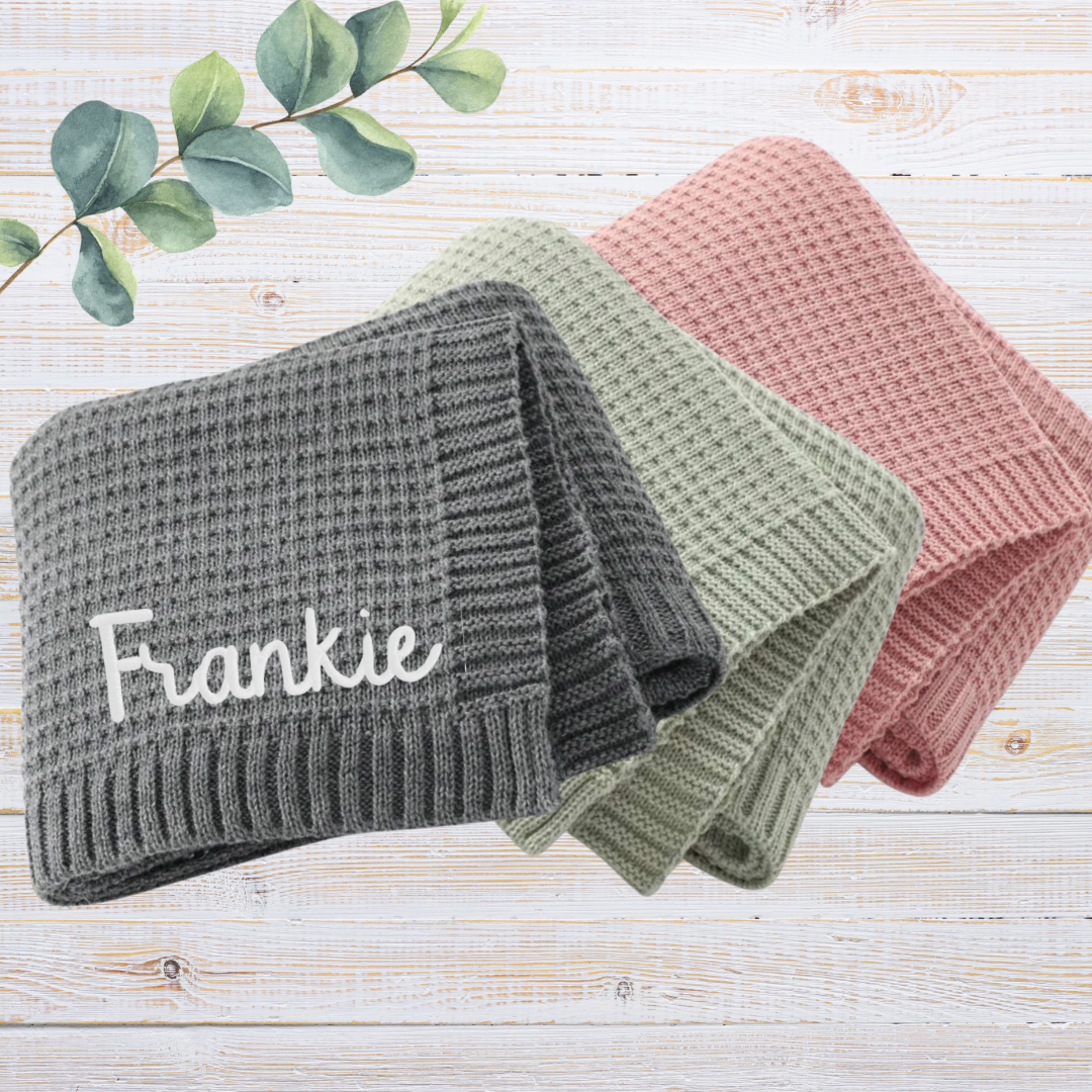 Wrap your child in ccosy comfort with our Personalised Embroidered Knit Blanket. The soft knit material provides warmth while the large embroidered name adds a personal touch. Perfect for snuggles and story time! Order now and make your child feel extra special!