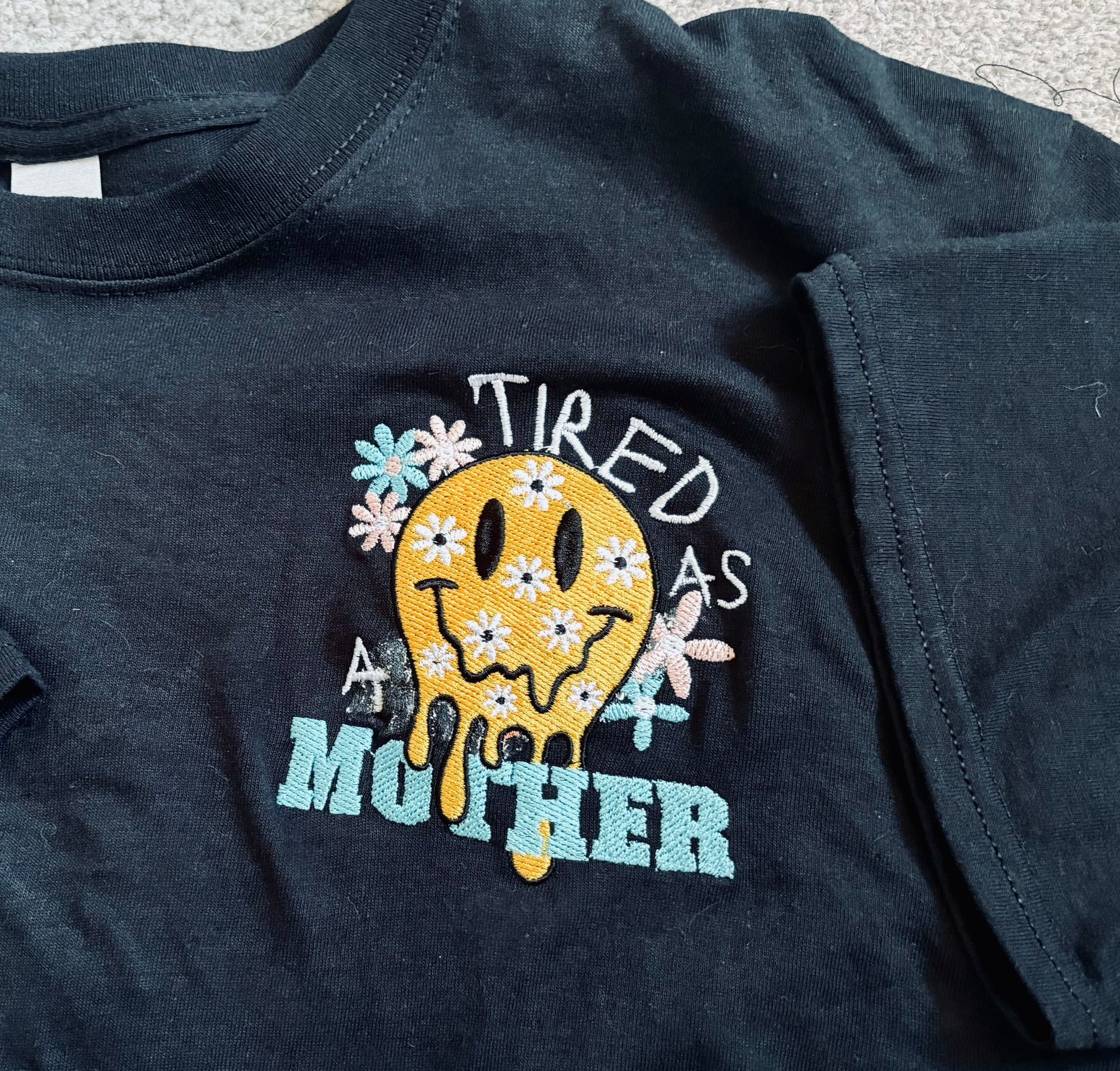 Let this shirt do the talking for you - the Tired As A Mother Embroidered Tshirt is the perfect way to express your exhaustion without saying a word. The perfectly stitched embroidery adds a playful touch to any outfit. (Plus, it's a great excuse to take a nap.)